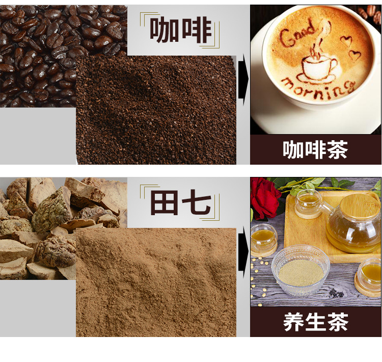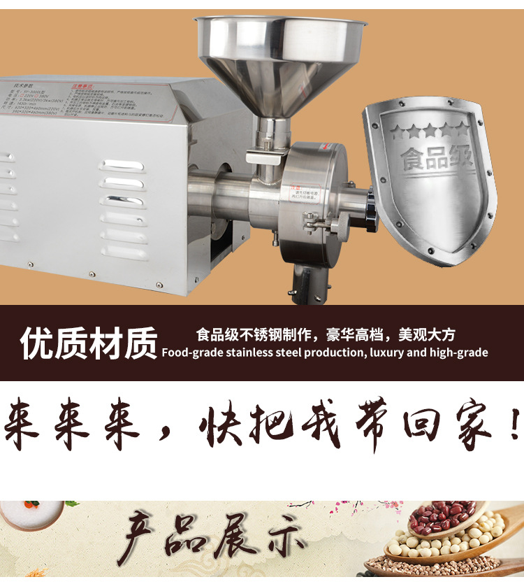 适用范围: 五谷杂粮磨粉机属连续投料式作业,结构豪华大方,噪音低,磨粉细腻,无粉尘,操作简单方便。适用于超市、商场和店铺档口现场加工各种五谷杂粮和中药材使用。五谷杂粮磨粉机加工范围广:各种粮食、中药材含芝麻、核桃、大米、黑米、黄豆、红豆、绿豆、黑豆、花生、莲子、玉米、高粱、大麦、荞麦、燕麦、杏仁、茯苓、红枣、芡实、枸杞、薏仁、山楂、淮山、首乌、红豆、阿胶、乳香、菟丝子、当归、党参、黄芪、等等