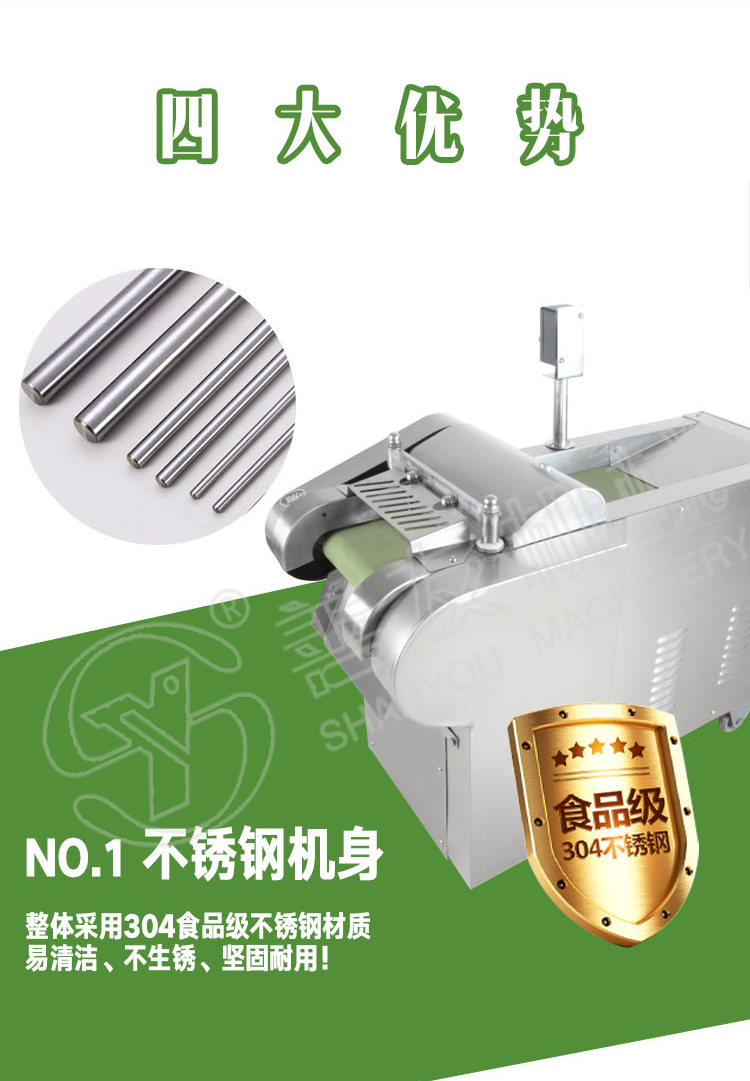 切菜机用于硬、软件各种根、茎、叶类蔬菜,萝卜、土豆、水果、薯类加工。