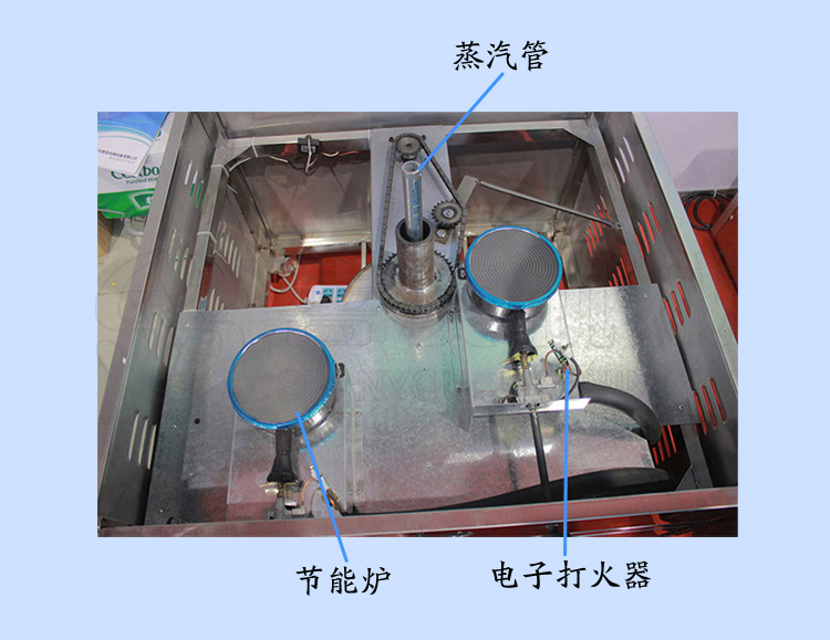 4、电动燃气锅巴馒头机具有煎烤和蒸汽功能,专业炉灶与机身一体设计,使用操作简单,打火和火力调节十分方便,跟使用家用液化气灶一样方便。